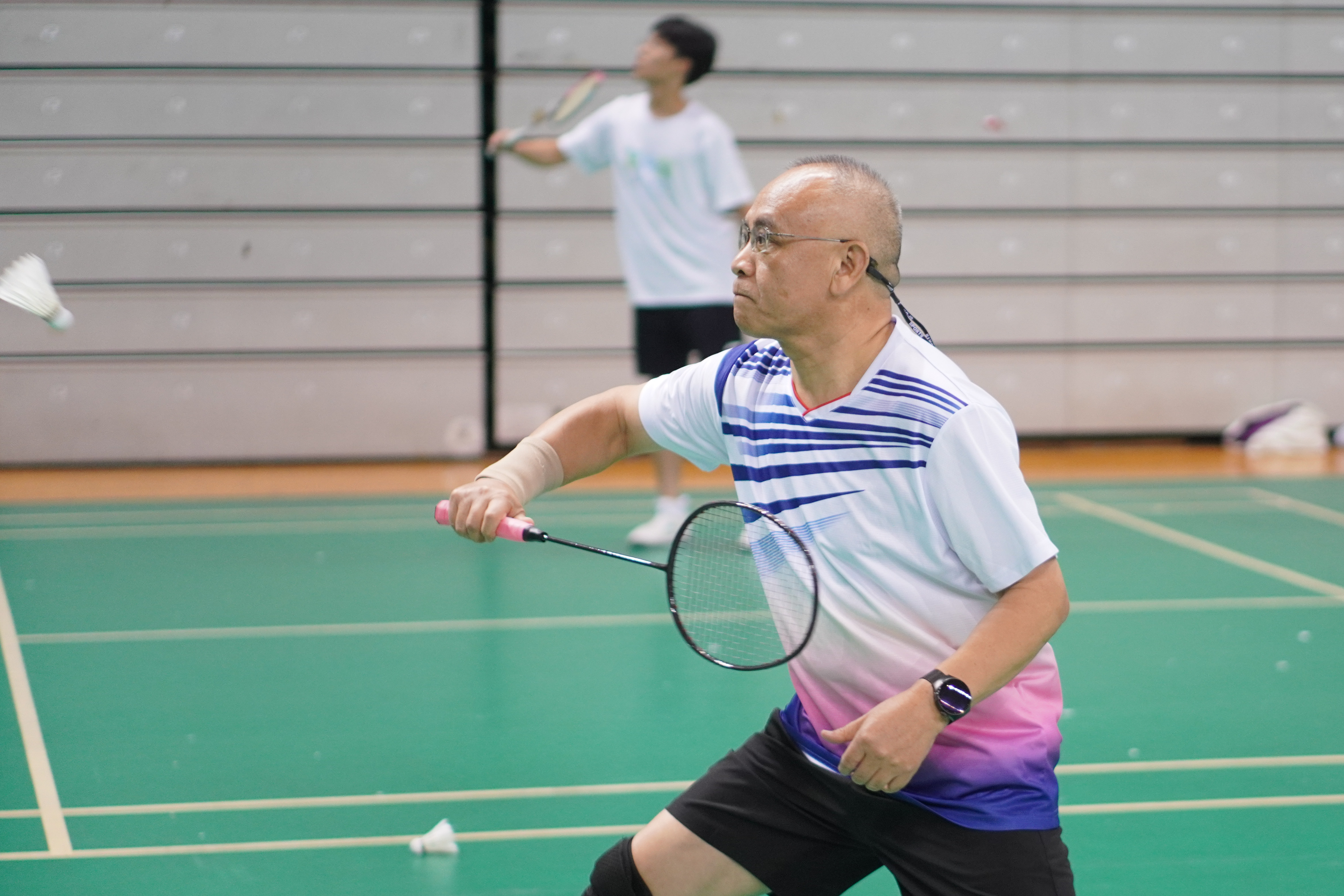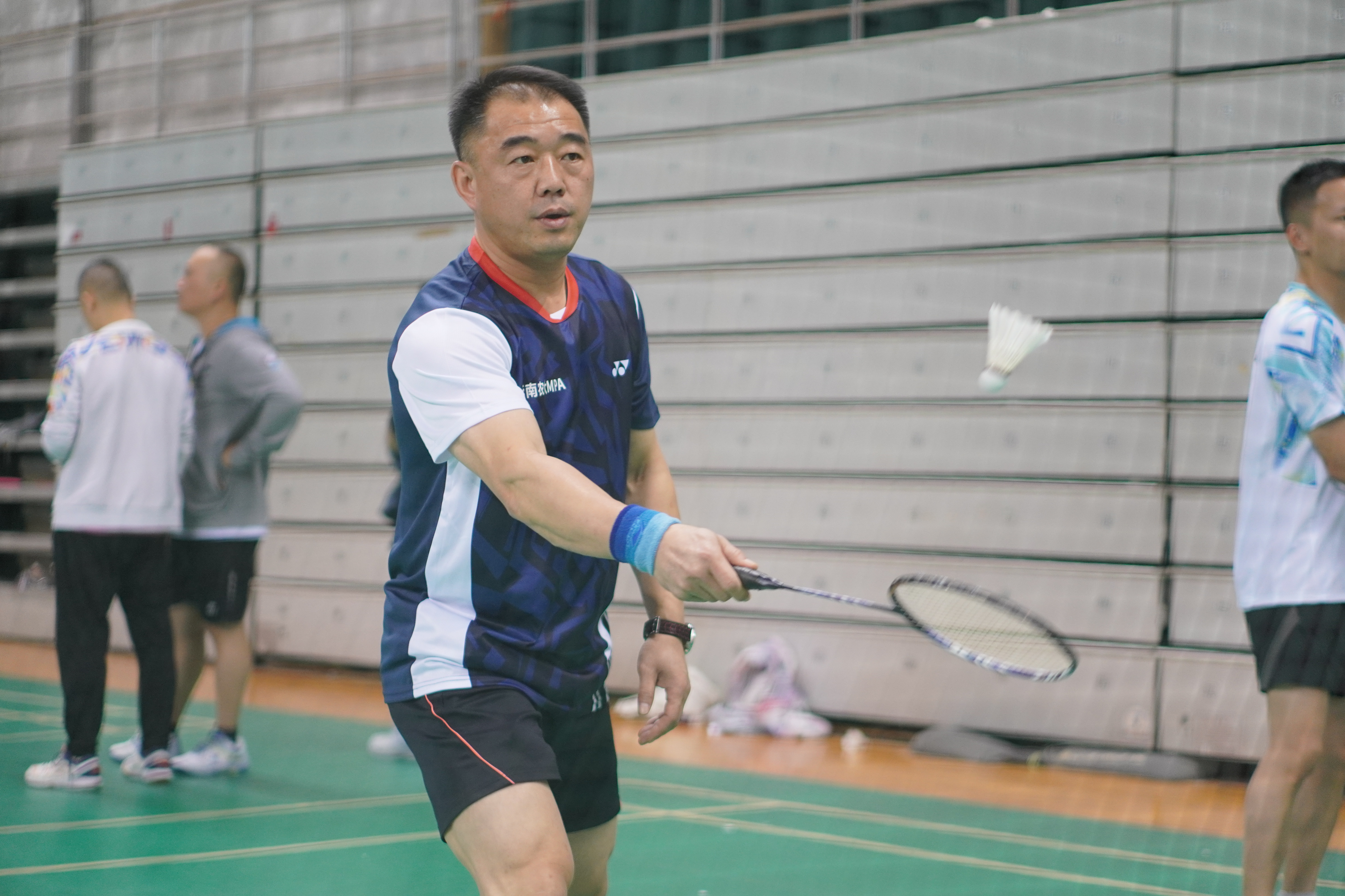 与此同时,“院长杯”羽毛球邀请赛也在热烈的氛围中如火如荼地进行着。来自各培养单位的院领导们齐聚一堂,尽情享受这场羽毛球盛宴。他们不仅是各自学校的管理者,更是羽毛球的热爱者,纷纷在赛场上挥汗如雨,展现出非凡的竞技精神。