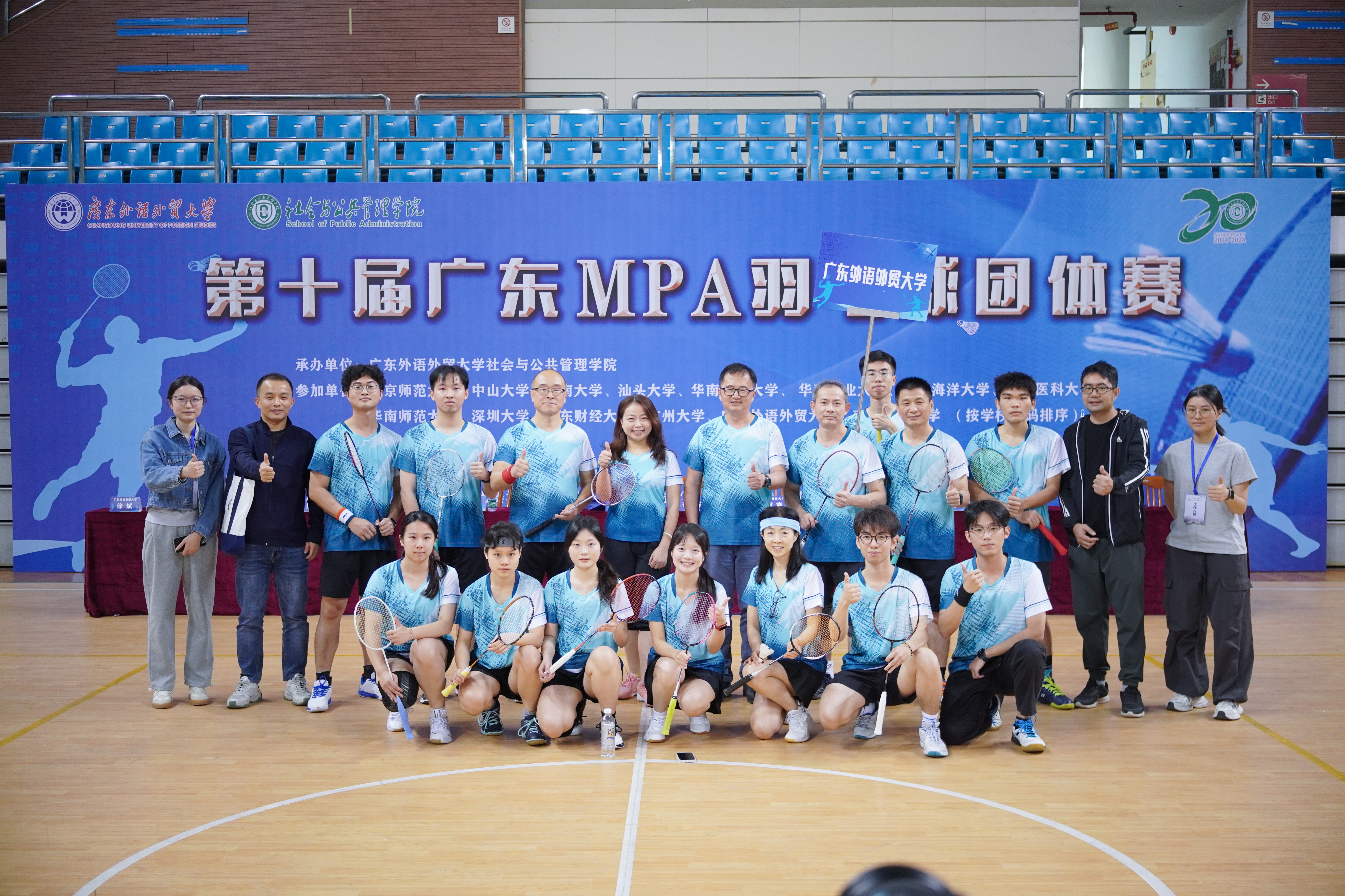 本网讯 为丰富MPA师生的课余生活,促进高校之间的交流,增强师生的身心健康,2024年12月1日,由广东高校MPA联盟主办、伟德国际victor1946,伟德bv1946官网承办的第十届广东MPA羽毛球团体赛在广东外语外贸大学(大学城校区)体育馆隆重举行。同时,为进一步促进各培养单位之间的互动,本次赛事还新增“院长杯”羽毛球邀请赛。