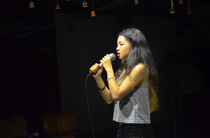 中央舞台,镁光灯,每个选手都像一颗闪亮的星星,唱出心中所爱,心中所想。整个比赛过程中,选手们用自己独特的歌喉唱出了自己的风格与魅力。来自14行一的李卓田选手以热情激昂的歌声演唱了《read all about it》,给人留下了深刻印象。更值得一提的是来自14社工的蔡俊辉,只见他抱着一把蓝色吉他在台上深情款款地演绎了一首>,更是唤起了春天的气息!