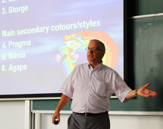 为了更好的调动同学们的兴趣,Robin 教授在讲座现场对同学们进行了一个“爱和吸引力”的心理小测试,同学们通过这一测试,一定程度上了解了对于爱的态度。此外,风趣的Robin 教授还给同学们带来了女性和男性对浪漫的不同表达方法,在座的同学受益匪浅。之后,同学们踊跃地向Robin 教授提出自己对爱的看法及疑惑之处,Robin 教授也一一认真解答,热烈的掌声响彻整个教室。
