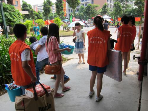 志愿者们不辞辛苦的微新生搬运行李