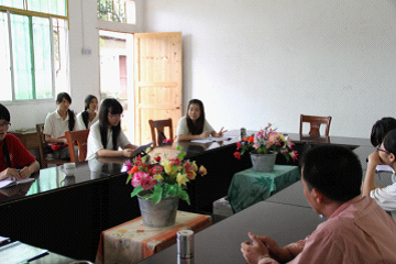 下午三点多,部分同学前往我们支教的地点,丰田小学,得到了校长、何主任等老师的热烈欢迎,并一起开了一个简短的会议。校方领导表示希望我们能提高孩子们的卫生意识、安全意识,并且一定要注意孩子们放学时回家途中的安全问题。经过与学校领导的一番交谈后,我们也更加明确了此行的目的与意义。随后,我们参观了学校,对学校以及学校周围的环境有了初步的了解。并希望通过接下来十多天与孩子们的相处,带给他们所没有见过的,所不知道的新鲜事物,开阔孩子们的眼界,提高他们对学习的热情,希望他们怀着一颗积极向上的心,去面对未来的生活。