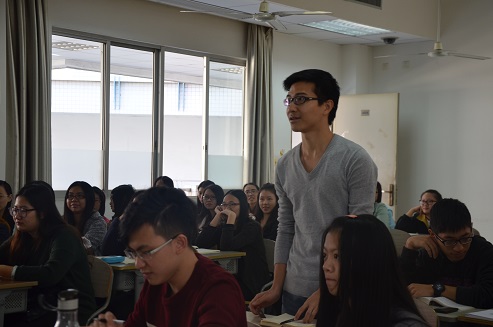 正如马教授对自己的形容,他就像早上八九点的太阳,充满朝气。在整个演讲过程中,大幅度的肢体动作﹑生动的面部表情﹑风趣幽默的口头语言,再加之引人入胜的课题内容,同学们都听得津津有味,并频频与教授进行互动,使得课堂上欢声笑语不断。
