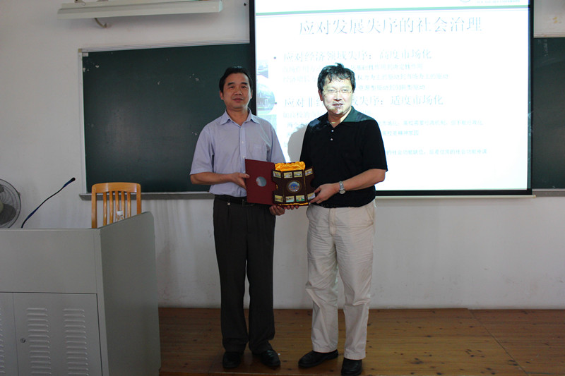 刘教授首先指出,此次讲座的主题是“社会转型与社会治理”,刘教授大致从四个方面来阐述该主题。一是社会转型的理论和现实。二是社会治理的含义和内容。三是转型期社会治理的历史演进。四是转型期社会治理的现实应对。其中,在第四个问题上,刘教授通过比较国内外的状况,以及内地与港澳台的比较,又分化为三个具体的方面进行讲解,其中包括:应对发展失衡的社会治理、应对发展失调的社会治理、应对发展失序的社会治理。在其演讲中,他说:“现代化不是西化”;“我不能说弘扬传统文化,我只能说坚守传统文化,因为传统文化都没了,你还去弘扬什么”;“在中国房改过程中,先是住房的社会功能缺位,后是住房的社会功能补课”;“应对非经济领域失序,我们应遵循应适度市场化原则”这些新颖有力的观点,赢得了大家的阵阵掌声。