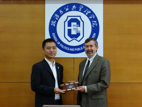 4月23日下午2:30,美国科罗拉多文理学院副院长ERIC POPKIN、副教授JOHN WILLIAMS、校联盟中国地区总裁潘安迪、首席执行官王飞宇一行来访广外,商谈合作。合作交流商谈会在学院会议室举行。我校国际处副处长吴志峰、科长周鹏,我院副院长付桂芳、公共管理系主任余芳等均参加了此次商谈会。