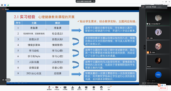 会议最后,学院副院长张信勇老师和MAP教育中心主任王俊静老师对同学们的实习实践给予了高度的认可,高云坚书记做总结发言指出:2019级应用心理专硕的同学们用“高标准、严要求”的实习实践为本专业今后的实习实践活动树立了标杆,通过分别建立交流微信群也能赋能反哺于学弟学妹们,形成了“老带新”的联动效应,会议在大家的“云掌声”中圆满结束。