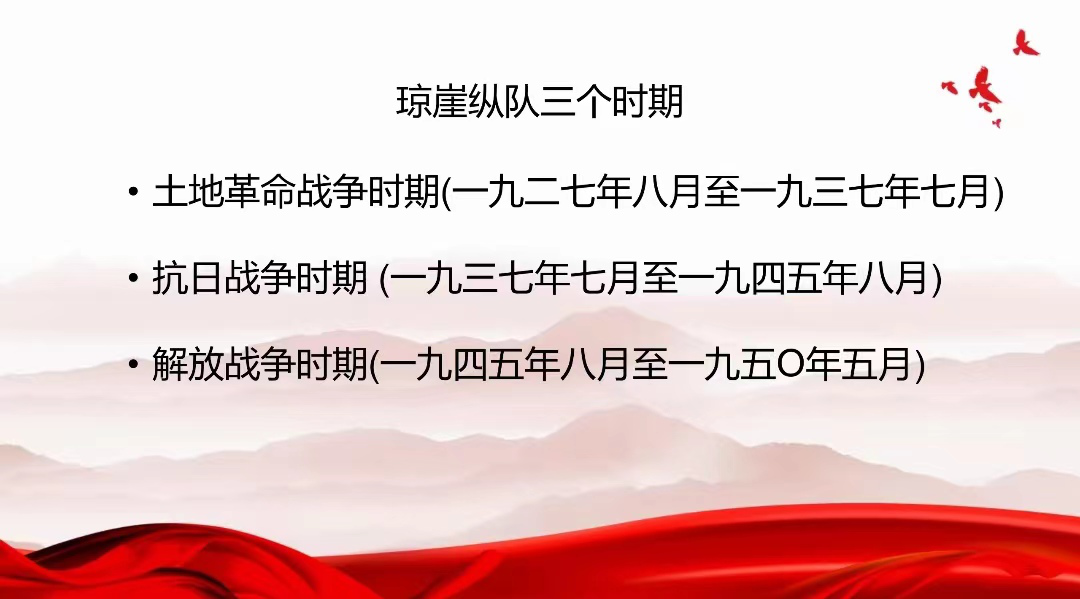 琼崖纵队是中国共产党在海南岛领导的一支人民武装,是以1927年9月海南岛农民起义队伍为基础组建的。这支人民武装在党中央和毛泽东同志的领导下,坚持孤岛奋战、艰苦卓绝,经历土地革命战争、抗日战争和解放战争,创造了二十三年红旗不倒的壮丽史诗。