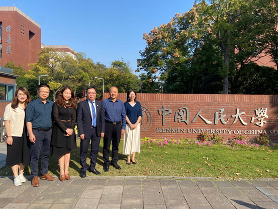 本网讯 为进一步发挥我校国际化人才培养优势以及我院乡村治理专业优势,10月30日上午,由校党委常委、副校长刘海春带队,研究生院院长杨励、国际项目办胡秋红科长,我院院长涂斌、副院长陈胜一行前往中国人民大学(苏州校区)参加国家留学基金管理委员会组织的“2023年乡村振兴人才培养专项”答辩会。