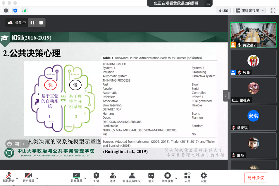 随后,张教授与现场及线上师生进行互动交流,讨论热烈。张教授长期聚焦行为公共管理学、行为公共政策、政治心理学等交叉学科领域。在场教师均表示,交叉学科具有和而不同、兼容并包的精神,张教授的讲座内容丰富、干货满满,引发出一系列对行为公共管理学等交叉学科的思考。今后,伟德国际victor1946将持续注重学术交流氛围,积极推进多学科交流。
