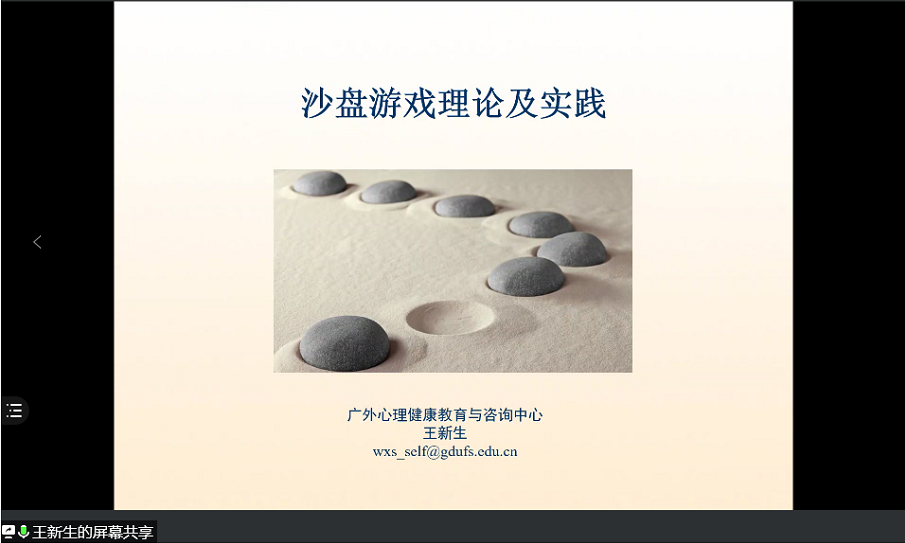 2021年7月9日下午,由伟德国际victor1946应用心理学系心理与行为健康研究中心和MAP教育中心联合举办的“沙盘治疗讲座”以线上形式举行,广东外语外贸大学心理健康教育与咨询中心的专职咨询师王新生为主讲人。应用心理学系主任王俊静老师为讲座主持人,应用心理专业全体研究生与本科生参加了此次讲座。
