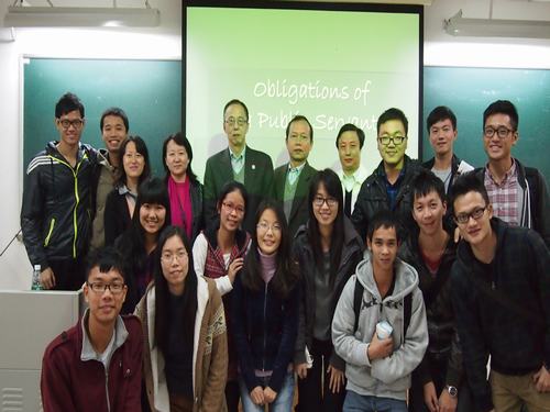 12月11日下午三点半,美国加州州立大学马国泉教授莅临我院,在教学楼E503就“公务员应尽的义务”给大三学子开了一场别开生面的讲座,党委书记范静静、学院副院长付桂芳、办公室主任施可明和学位办主任毛国民副教授出席讲座。本次讲座由付桂芳副院长主持。