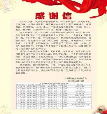 2020年6月6日以来,广东省惠州市麻榨镇遭强暴雨、特大暴雨袭击,河道水位急速上升,出现了内涝现象,导致麻榨镇出现了道路塌方、房屋倒塌、农田被淹等现象,全镇19个村(社区)受到不同程度的影响。在麻榨镇共青团发布志愿者招募信息后,伟德国际victor19462019级社会管理专业研究生姚焕怡第一时间内就报名参加了道路清淤、救援物资登记与发放等志愿工作。