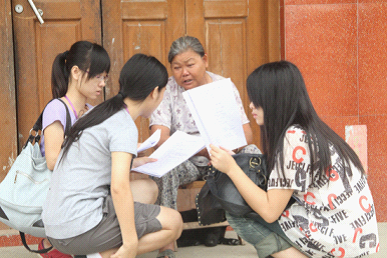 榕树下的老人与真诚的调研组员