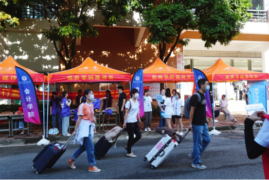 上午8点多,新生们陆续前来报到,学院迎新工作正式拉开帷幕。夏日骄阳似火,新生和家长在志愿者的引导和帮助下来到宿舍并安置好行李,在朋辈导师的帮助下完成了入学手续的办理,正式成为了一名大学新生。