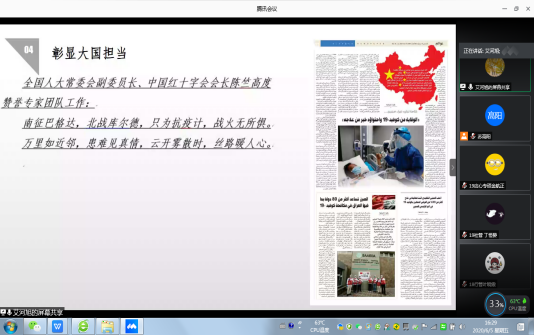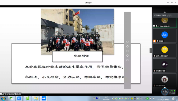 本网讯 6月5日下午,伟德国际victor1946根据学校统一部署举办线上思政宣讲会,邀请我校援伊拉克抗疫青年教师艾河旭主讲。活动由伟德国际victor1946党委主办,学院(中心)领导班子、系(中心)主任、党支部书记、学院40岁以下青年教师、学生党员、发展对象、入党积极分子、研究生本科生团学主要干部等近200名师生参加线上活动。