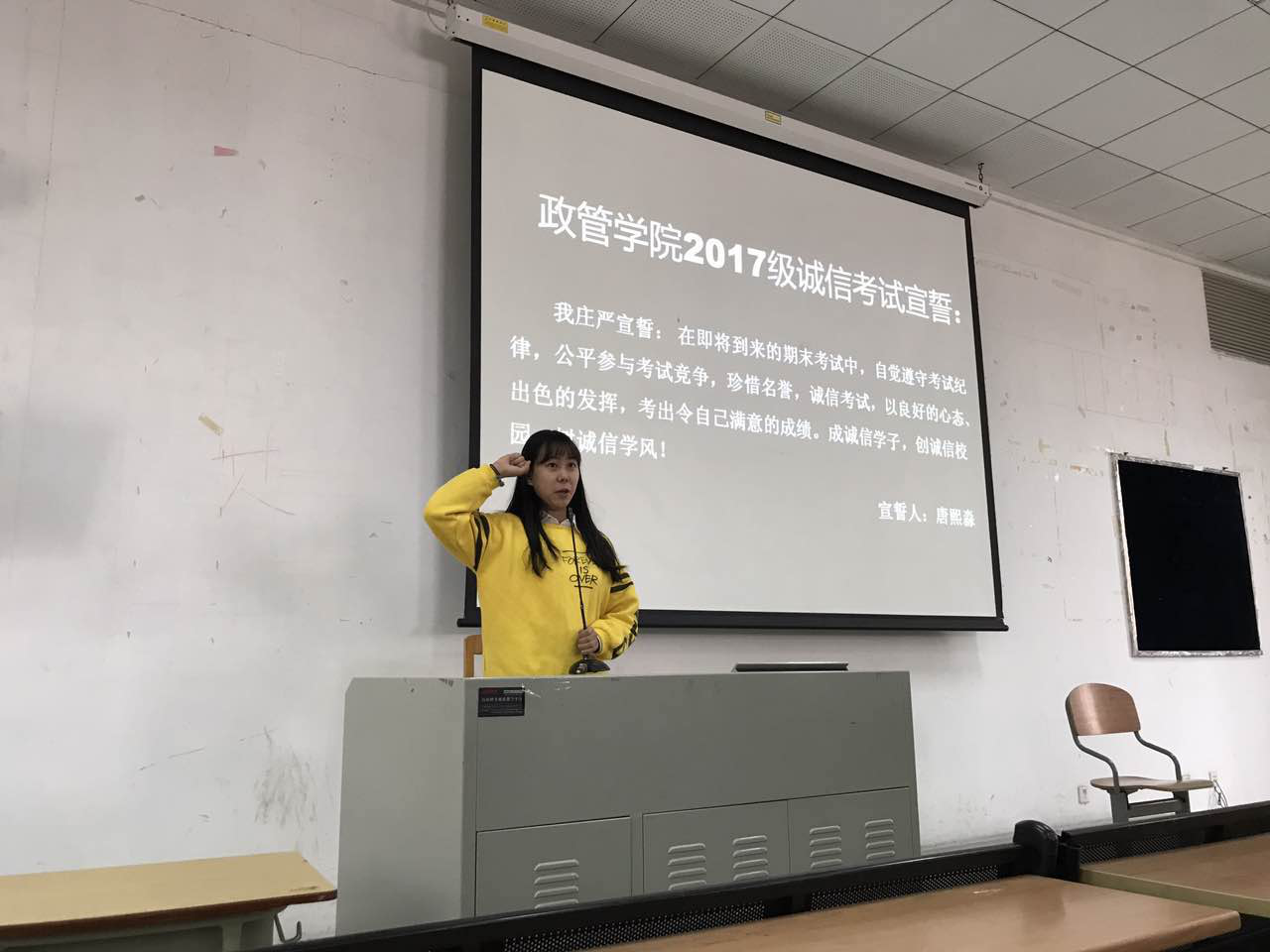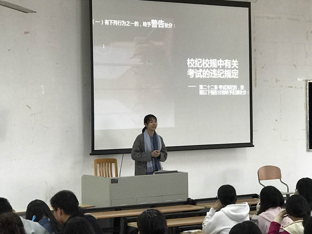 学期正渐渐步入尾声,学生们都在紧张准备着期末考试。为了贯彻落实学校的新规,呼吁学生诚信考试,政治与公共管理学院辅导员白志华、房瑞佳组织召开了2015级、2016级与2017级学生诚信考试建设大会,给学生们上了人生中重要的一堂课。