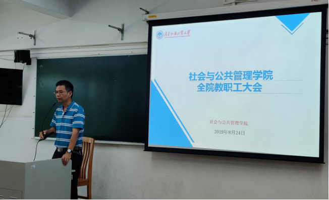8月24日上午,伟德国际victor1946在北校区二教128召开新学期全体教职工会议。学院(中心)领导就新学期工作发表讲话,学院党委书记高云坚主持会议。