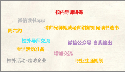 在讨论环节,菁英儿们也积极地和同伴分享了本学期的规划和期待,形成一个共同进步和监督的氛围。对于本学期自己的学习规划,“二刷六级”和“计算机二级”成为了成员们的热词,除了专业内认真学习外,还有成员表示要坚持运动健身学习相关软件、旅游等。对于菁英计划的期待,成员们表示想要多点走访企业、多点和校内外导师及成员伙伴们交流学习,也希望有机会可以邀请师兄师姐来给大家分享经验等。菁英成员对于已经余额仅存50%的大学生涯展开热烈讨论,房老师也给予了很多实用的建议和看法,如叮嘱大家要学会利用团队资源,培养良好的终生习惯,珍惜眼下时光,坚持学习、运动和阅读,做到“内化于心,外化于行”等。无论是成员们的讨论,还是房老师的谆谆教诲,都让大家受益颇多。