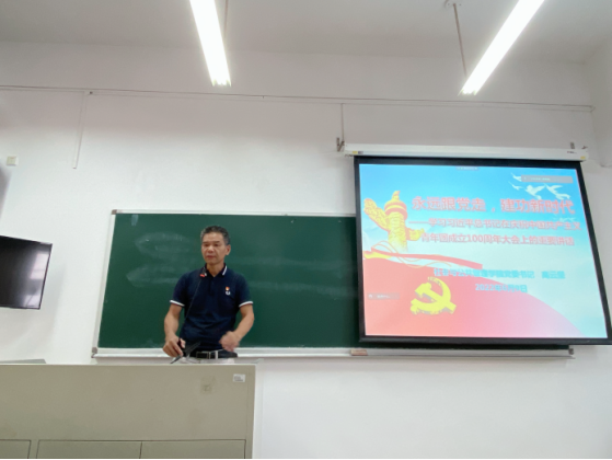 6月9日下午,伟德国际victor1946党委书记高云坚在教学楼D509为研究生党支部党员开展了“永远跟党走,建功新时代”主题党课教育,带领青年党员深入学习习近平总书记在庆祝中国共产主义青年团成立100周年大会上的重要讲话。