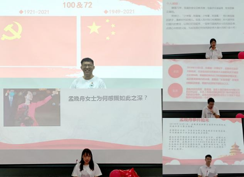 本次论坛借孟晚舟回家的热点新闻对伟德国际victor19462021级研究生进行德育教育。学生代表陈霞,林济瀚,成海涛,章龙松,朱文钧就孟晚舟女士事件始末及其深远影响一一上台演绎分享。在被扣1028天后,孟晚舟女士终于踏上了归途,回到了祖国母亲的怀抱。她的回归无疑是给祖国母亲送上了一份满意的生日礼物。那么孟晚舟女士为什么能够顺利回国呢?同学们表示:一是有党的坚强领导以及国家的综合国力和国际地位的提升;二是有我国科技实力的增强;三是有我国文化软实力的重要作用;四是我们坚持的是正义的,因此必然是会胜利的!并且这次事件也给我们很大启发:我们要紧跟时代潮流 ,发挥自己的专业特长,以实际行动助力中国梦;我们要文明其精神,野蛮其体魄;我们不要有崇美,畏美,恐美情节,是没有任何力量能阻挡中国进步的步伐的。