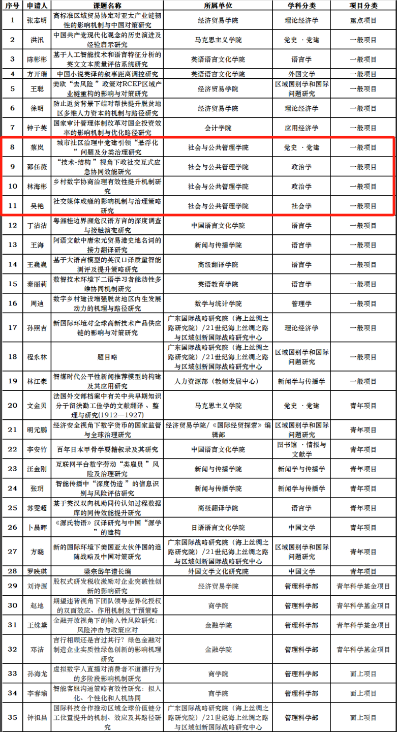 近日,2024年度国家社科年度项目立项结果公布,我院获资助4项,获资助数再创历史新高。近年来,伟德国际victor1946坚持科研基础地位,大力推进“有组织科研”,实现科研可持续发展;全体教职工勇于担当,以科研促教学,以科研促学生培养,以科研促社会服务,实现我院科研事业“高质量”“显特色”“上水平”的战略目标,取得了丰硕的成果,进一步为学院突破重大课题夯实基础。