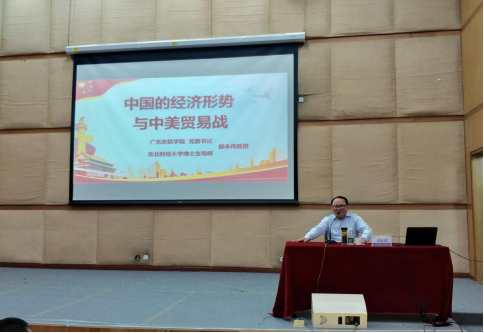 2019年11月7日下午,我院联合经贸学院在南校区图书馆二楼多功能报告厅举办“中国的经济形势与任务”报告会,特邀广东东软学院党委书记、博士生导师都本伟教授作“中国的经济形势与中美贸易战”专题报告。报告会由经贸学院院长张建武主持。我院院长彭未名及师生280人与会。