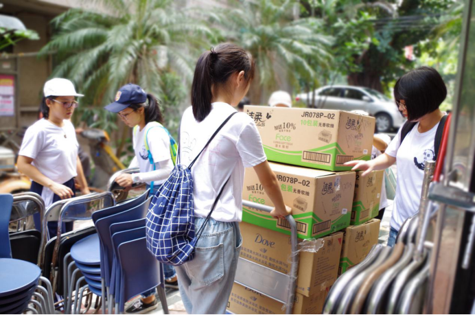 同学们为文艺汇演准备物资