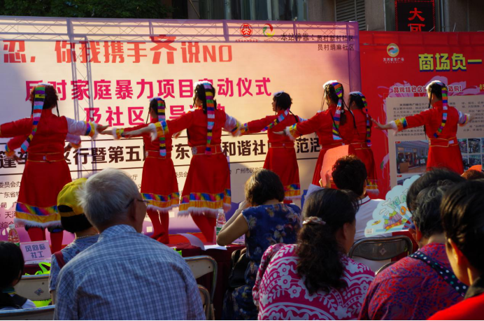 2016年10月27日下午,16级社工班参与了员村社区“家庭暴力零容忍,你我携手齐说NO”反对家庭暴力项目启动仪式及社区倡导的志愿者活动。在这里,我班组成了天河区防家暴志愿宣传队,参与了活动现场的布置、摊位设置以及文艺汇演现场秩序的维护。