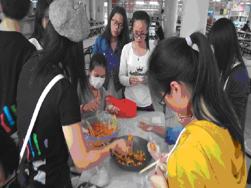 首先,勤劳贤惠的女生们开始准备一起包饺子,饺子寓意着团圆幸福,带着这份美好的寓意,大家有说有笑的开始动手,几个女生负责和馅,另外几个等着包,其余的人有的煲了开水准备煮,男生们也跟着一起帮手。终于,在大家的努力之下,一锅锅饺子煮好出锅,大家都迫不及待的开吃,一个个竖起大拇指。