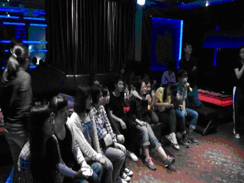 夜幕渐渐降临,大家也都意犹未尽,于是我们继续前行,活动来到了高潮部分——唱K,刚开始大家来都稍作矜持,几个同学小声歌唱,随着气氛越来越浓烈,大家也都扯开嗓子豪迈的唱起来,《泡沫》,《趁早》等最近流行的歌曲大家都十分激动的热烈合唱,当然也少不了我们的班歌《当》,在活动即将结束时,大家一起切了蛋糕,庆祝我们在一起200的日子。