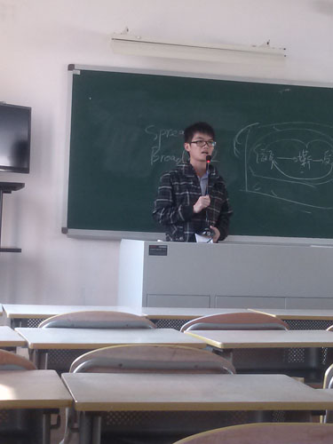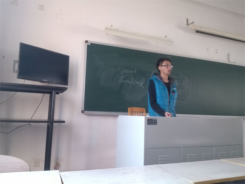 再接着,是我们班元老级人物张嘉炜同学的经验分享。其中,他强调了简历格式的重要性,特别是要在简历中发现自己的不足并加以完善。同时,要有竞争观念,及早做好实习的准备。短短几分钟的经验分享,大家都收益匪浅。