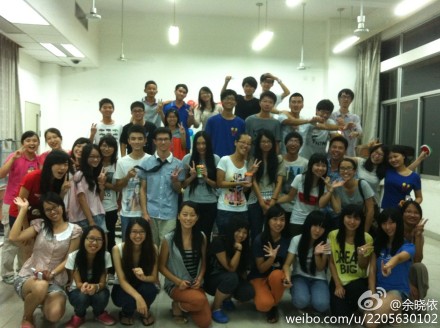 广外11行一Happy Night主题六月庆生会于6月14日晚7点半在教学楼盛大举行。这一次活动是班委换届后举行的第一次活动,同时也是本学期最后一次的班级活动,所以本次庆生会的意义特别重大。庆生会是为该月的寿星举行的,尽管班委换届了,但这并不意味着班级精神和方针的改编,团结友爱,以“营造家温暖”为核心的大爱精神一直在传承和延续。 本次生日会是以各样的形式开展的。蛋糕和饮料等食品在活动前已经准备好,教室也经过班委们的精心布置,座位被排成3个爱心,墙上也有用七彩气球围成的大爱心。虽然活动还没开始,但已从现场深深地感受到喜庆的气息。