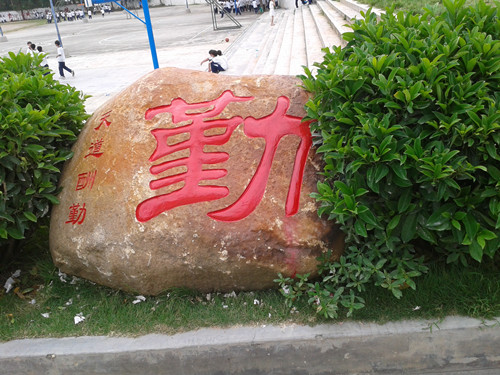 石头上刻着“勤天道酬勤”勉励学生