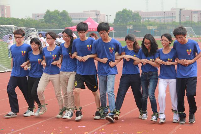 在十人十一足的比赛过程中,行一的同学们再次深刻地体现了团结协作的精神,不仅11行一的同学们,还有10行一的师兄师姐们都在努力地帮忙加油,参赛的同学们也毫不逊色,在“一二一二”的口号中整齐地前进。
