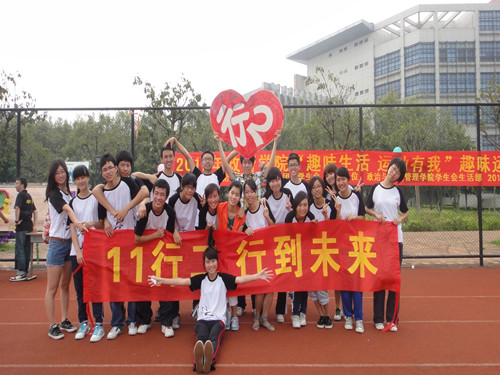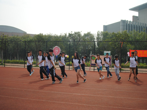 2012年5月19日上午,等候已久的政管趣运终于拉开了序幕。虽然比赛项目和表演项目都已经排练了几个星期,行二的同学还是有点紧张,早早的就到了现场,进行场地的考察以及项目的试炼。本次的趣运共有四个项目再加一个表演节目,排名是按最后的时间多少所换取的分数来决定的(时间最少的该项目得20分,第二的18,第三16,以此类推。)四个项目分别是欢乐传送带,水杯接吻,十人十一足,背气球。