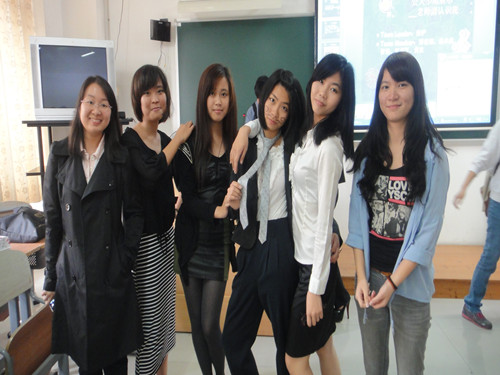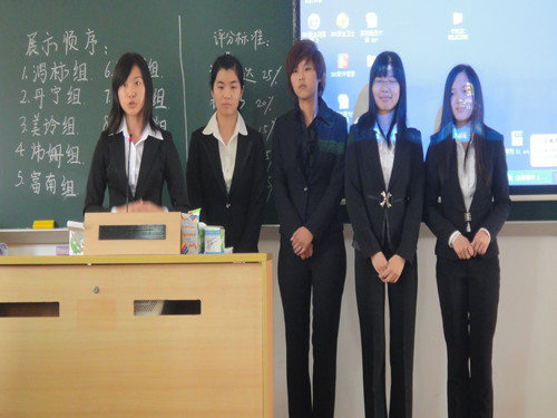 在学委的宣布开始之后,我们班各组同学无不使出浑身解数,将本组的特色展现出来,有特殊的NBB(never be beaten)组,也有富有特色的“多国语言组”,浪漫的深藏blue组……其中很令人印象深刻的是“梦想之巅”,由池姗同学带领的一组“精英队”,全部正装上阵,开场以一个霸气的视频轰动全场,更有柔葭“帅哥”引来男生和女生的尖叫,就连公共关系学老师也被我们触动,在一旁开心的大笑!