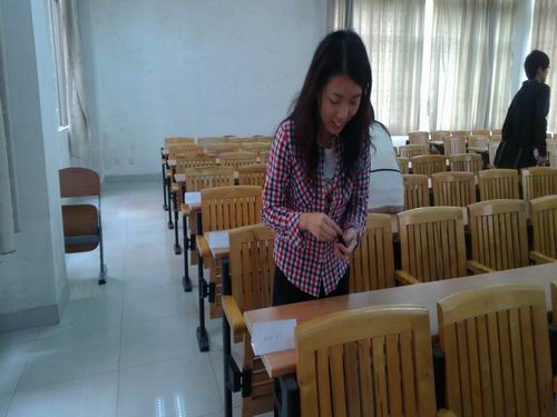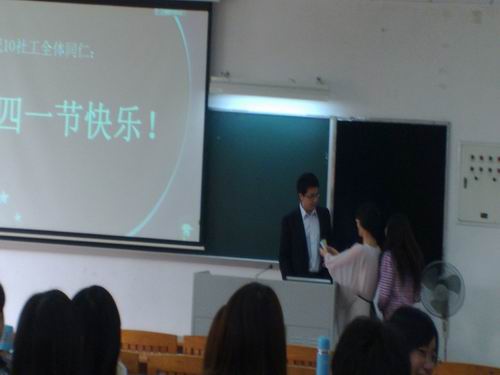 第一节课快下课的时候,大家收到学习委员的一条飞信:“心理课原课室投影系统坏,改在E506上课,请互相通知。”下课后,大家按通知走到E506,发现门上写着:“此课室多媒体坏,请移步至E306。”大伙很无奈地又走到E306,又发现门上写着:“亲爱的10社工同学们,心理课原课室投影已修好,请下楼上课^_^”此时,大家才猛然想起今天是愚人节,自己被“愚”了。就在这会儿,密谋本次活动的四位班委正在原课室干得热火朝天。她们首先将准备好的整人油漆倒在每个座位上,在油漆上放上饼干,再用PPT打出:“祝10社工全体同仁四一节快乐!”四位班委在5分钟内风风火火地布置完所有事情后,迅速撤离案发现场,待听到有同学进课室尖叫后才装作若无其事地走进课室。