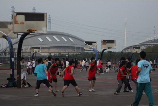 2011年11月24日下午17:00,阳光明媚,天高气爽,篮球场上人头汹涌,热闹非凡。在人潮中有一支红色军队,红得耀眼,红得热血。他们是谁?对,没错,他们就是10行二的男子篮球队!这是他们今年“政管杯”的首场比赛,大家都在热切期待。听,他们正紧张地讨论战术。瞧,他们正有秩序地列队练习上篮。看,他们每个人的脸上都是一副认真的表情,严阵以待…… 10分钟后,09社工班的师兄们也来了。犹记师兄们在上一届政管杯中的英姿,压力不小啊!看他们来势汹汹,10行二的每个人都不敢松一口气。 开场了,09社工班拔得头筹,先抢到球,10行二马上摆好阵型,开始了严密的防守,筑起一道道铜墙铁壁,导致09社工班的第一次进攻失败。 这给了10行二的队员们一次迅猛反击的机会,过场、落位、传球、突破、过人、投篮,一气呵成,干净利索,这都是男生们多次连夜开战略会议的结果啊!一次次严密的防守,一次次成功的进攻,加上场下啦啦队给力的呐喊,10行二的男子篮球队在篮球上矫若游龙,泽亮的三分亮了,吴晗的快攻成了,啊沐的上篮中了,少帆的防守稳若泰山,还有辉君、文沛、旭培等队员的默契配合,10行二屡屡得分。中场哨声响起,18:2,10行二以领先16分的优势结束了上半场的比赛。