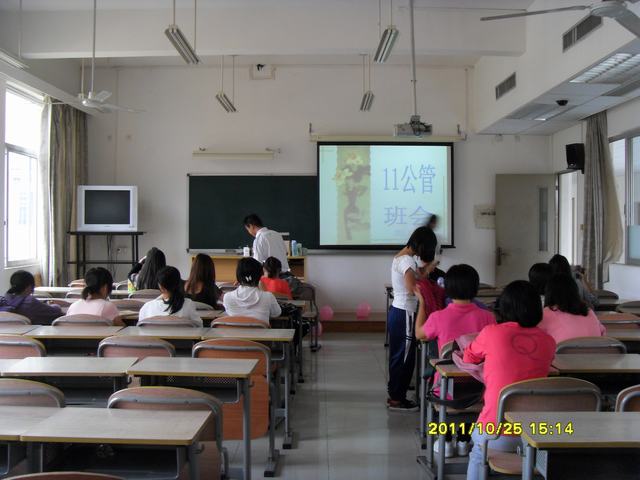 10月25日下午3时30分 ,政管学院11级公管系在教学楼C206举行了第一次班会。这次由公管系班委组织 ,全班同学参加了这次班会。