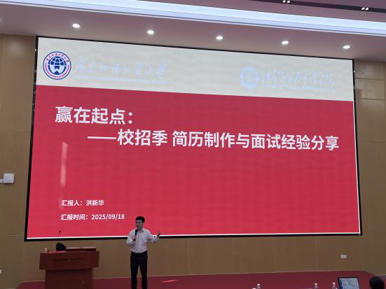 洪新华副总经理针对简历的制作、面试流程及评分纬度,用HR的视角讲解企业筛选机制。同时,他结合自身经历,指出学生可以根据自身兴趣、条件、优势,尽早规划,获取机会。