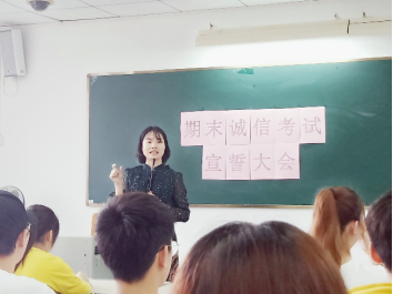 首先是辅导员房瑞佳老师发言。房老师强调了考试的规章制度,让同学们认识到诚信应考试的重要性和必要性,鼓励同学们形成好习惯,做一个诚信考生。