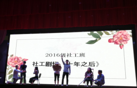 接着,2016级社工班表演一个名为《十年之后》的小剧场。运用不同时间线闪回的艺术手法讲述了一个社会工作专业毕业多年的男士面临工作、生活和家庭的冲突时的深刻反思。2011级毕业生代表黄晋硕在参与了师生互动游戏后发表了感言。他在大学期间就已开始创业,现在是广东益米科技有限公司的创始人。他说自己虽然选择的是创业而没有继续留在社工行业,但是母校对他来说意义重大,因此他还为自己立下一个目标:下一个十年庆典将为母校捐赠一座图书馆,并称自己会以此不断激励自己成长进步!