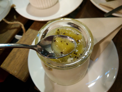 今天店里的酸奶有三种口味:奇异果、苹果和芒果。经鉴定,这三种口味只是果酱的区别。不过每一种果酱都是店家买来新鲜水果自己熬的哦。这么费功夫,出品自然不会太差。酸奶甜度比较低,配上果酱刚刚好。