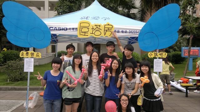 因为他们一直在坚持努力服务同学们却没怎么休息,尽管屋内是人潮涌动,尽管屋外是阳光毒辣。 后勤的同学不断地在补给水果沙拉和菊花杞子茶,由于人群是一波又一波,她们累到手都酸了却还坚持着,茶不够喝,又立刻到4栋楼下打水;“拉客”的同学一整个下午都在保持微笑和游说经过的同学们,他们的脸部表情都僵硬了却还锲而不舍。他们用甜美的笑容和体贴的话语赢得了不少同学们的称赞。