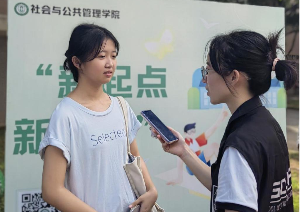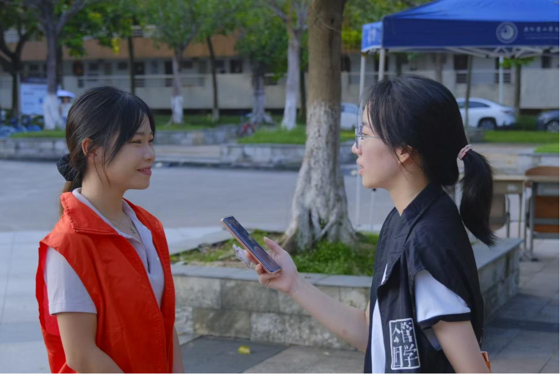 入学第一天,新生与家长们的脸上洋溢着对即将展开的大学生活的无限憧憬与激动。一位新生在谈及对大学生活的期许时,满怀憧憬地说道“希望自己能在学校学到有用的知识,让我自己变得更好。”在问到入学第一天的感触时,也表达了对学校迎新工作的认可,“感觉学长学姐们都很热情,一路上都有志愿者的引导,她们都很亲切,让我觉得我能很快地适应这个崭新的环境。”