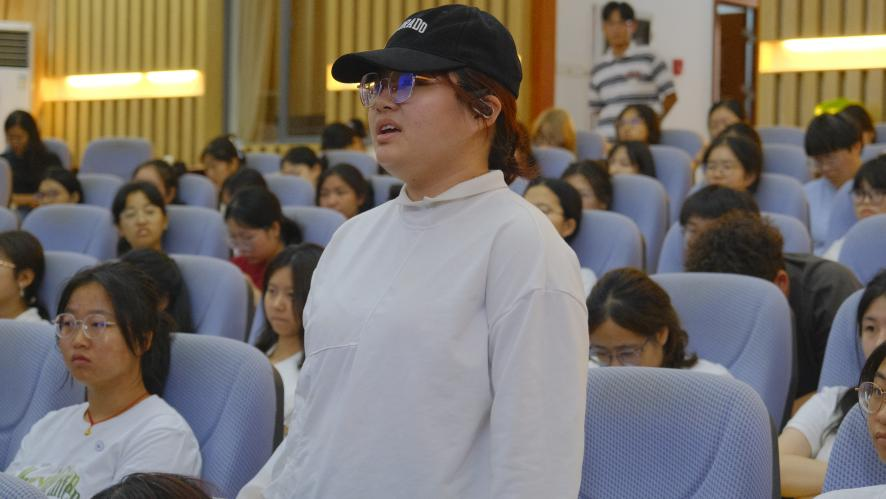 在大会中,李锐斌校友与在场学生进行互动,从自身的经历出发回答了在场学生的疑问,并对他们进行鼓励。
