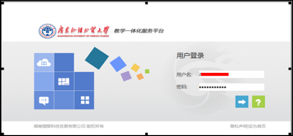 2、进入教务管理系统,输入用户名和密码,进入学生端系统。