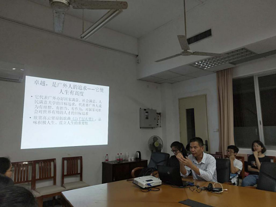 之后,高书记强调了广外价值观与校训之间的价值目标方向与价值引导遵循的关系。这两者的目的在于培养“有德有才,有情有义”的卓越广外人。同时,高书记也解释了社会主义核心价值观与广外价值观的“源与流”的关系,倡导应做到追求卓越、舍我其谁、坚持诚信、保持自信。