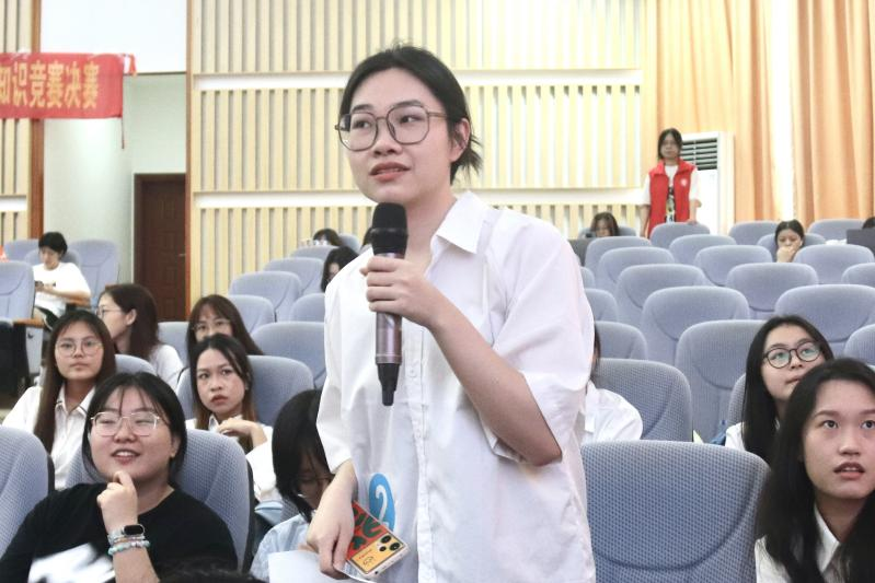 决赛正式开始。在第一环节“青春心向党”中,选手对单选、多选、图片题进行抢答。该环节既需要选手具备丰富的党史知识,又考验选手的反应能力和团队的合作意识。此外,本环节创新红歌接唱环节,缓解了紧张的抢答氛围。