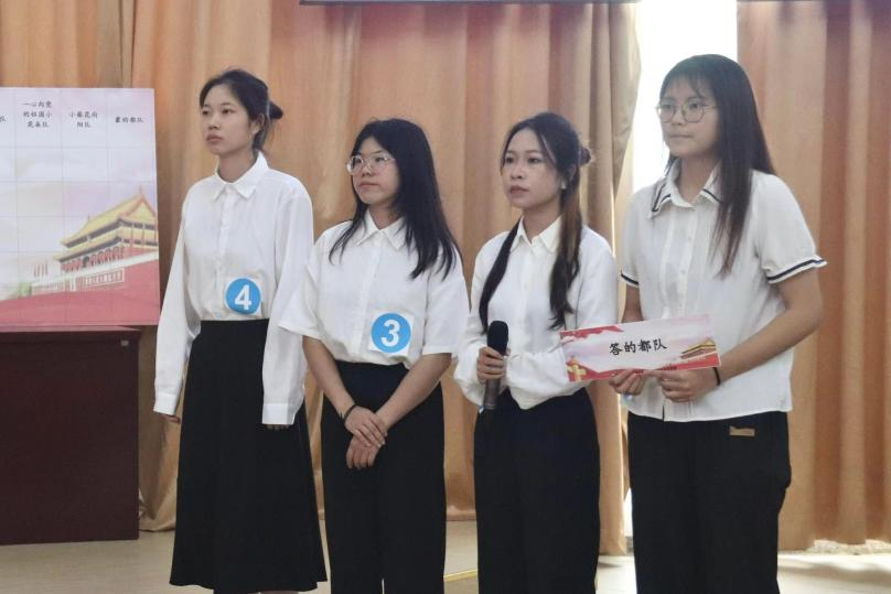 本次党史知识竞赛由初赛和决赛两场比赛组成。在3月27日举行的初赛中,各支队伍以小组为单位进行了笔试答题。经过激烈的角逐,八支队伍脱颖而出,进入决赛;他们分别是:麦当劳随心配队、永不服输的中国女人队、啊对对队、蒙的全队、一心向党的祖国小花朵队、小葵花向阳队、乘风破浪队、答的都队。